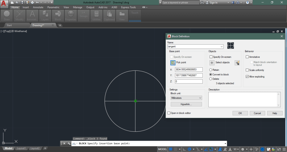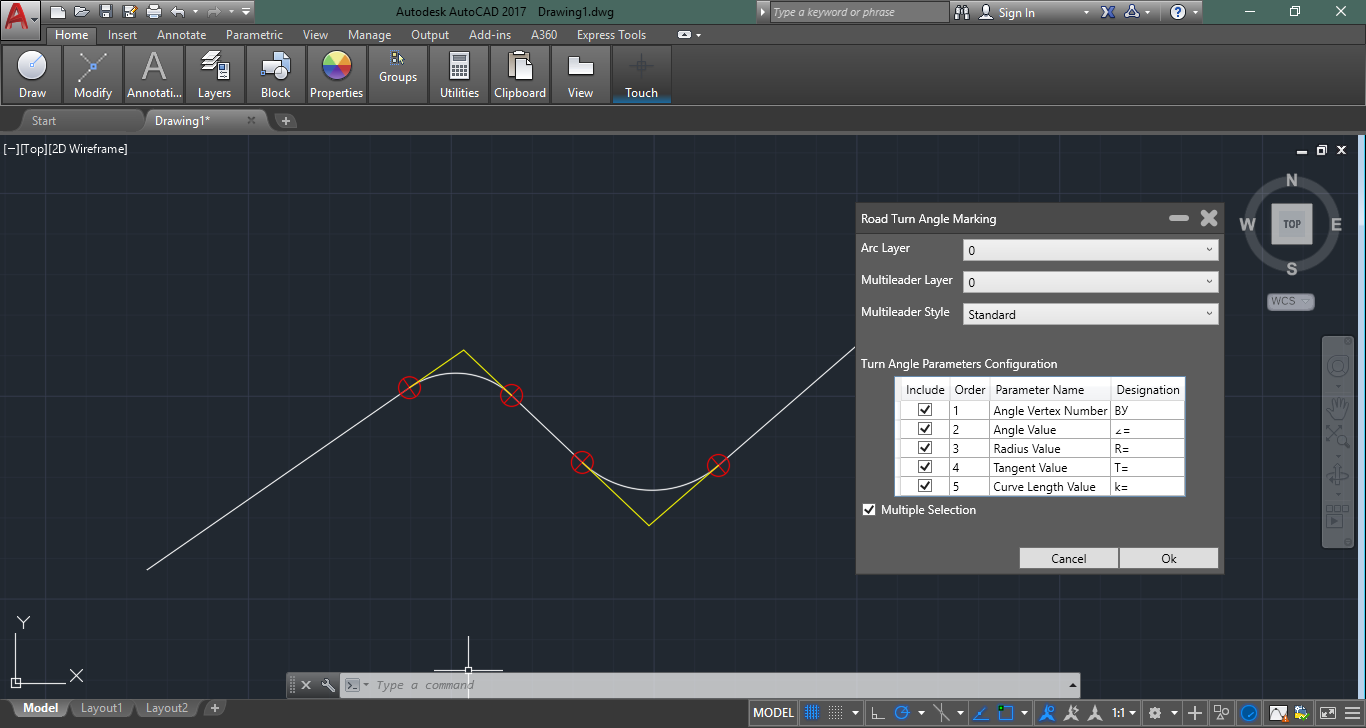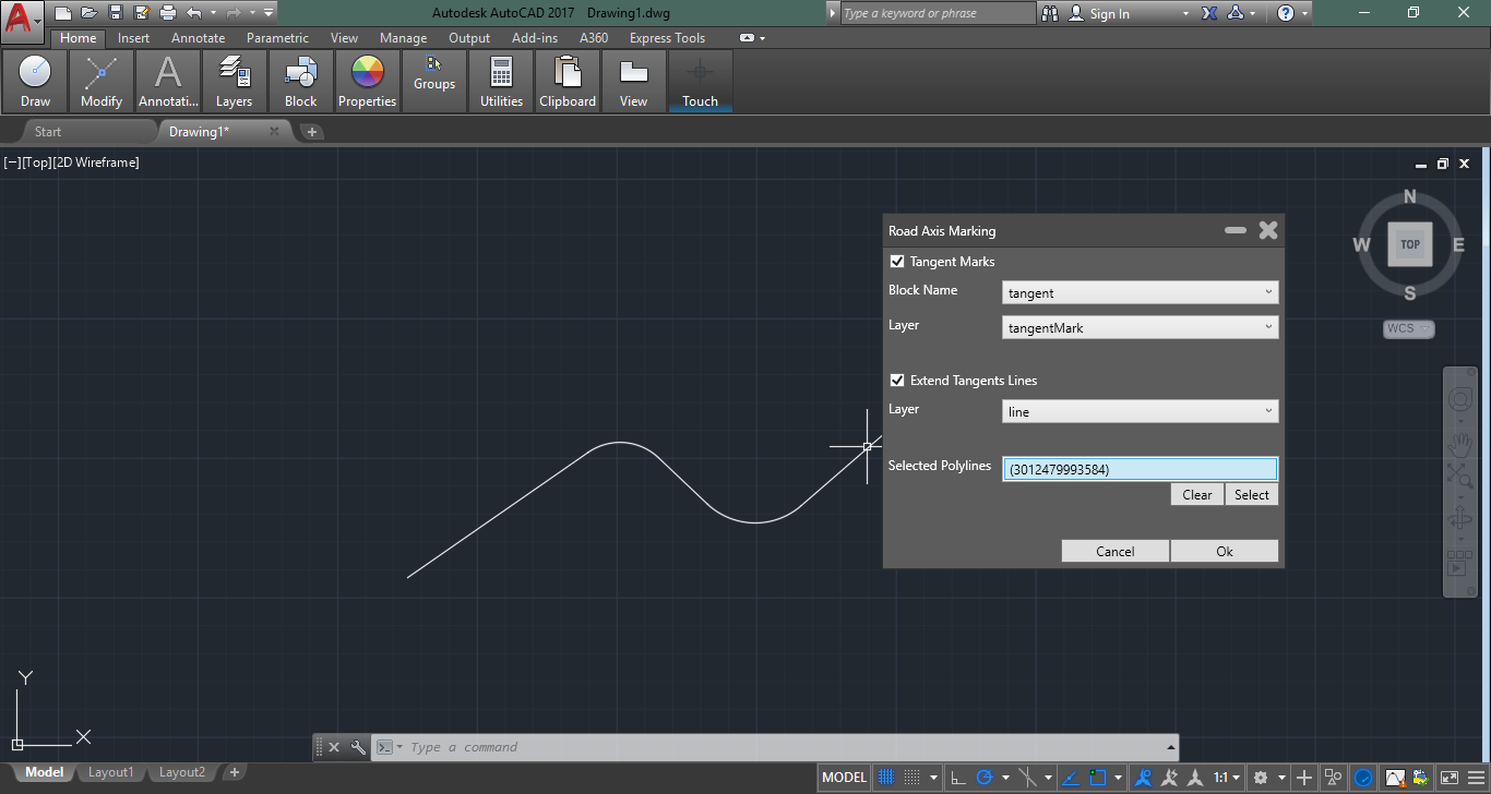 Then you can specify command settings (enable tangent marks, set block and layer for them, enable extend tangent lines and lines layer):