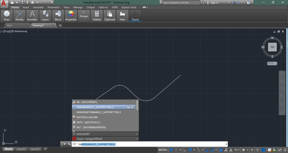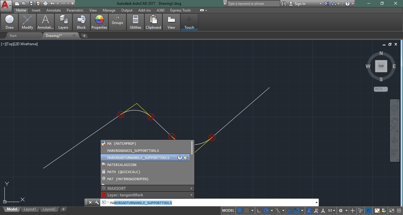 Enter command name (MARKROADTURNANGLE_SUPPORTTOOLS):