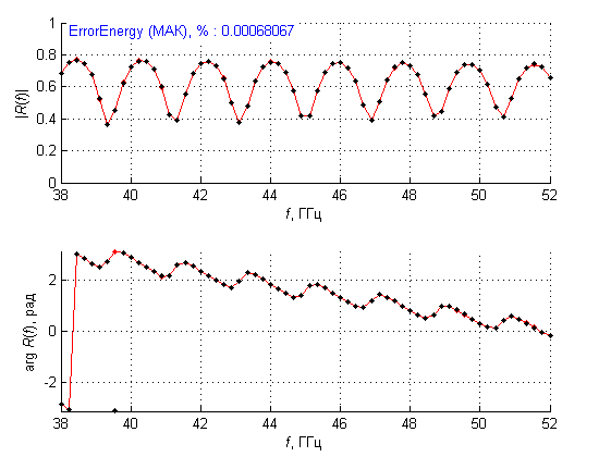 with the interpolation points selected in maximums of the residual spectrum. This interpolation yields zeros and poles that are converted to the magnitudes and phases of the exponents.